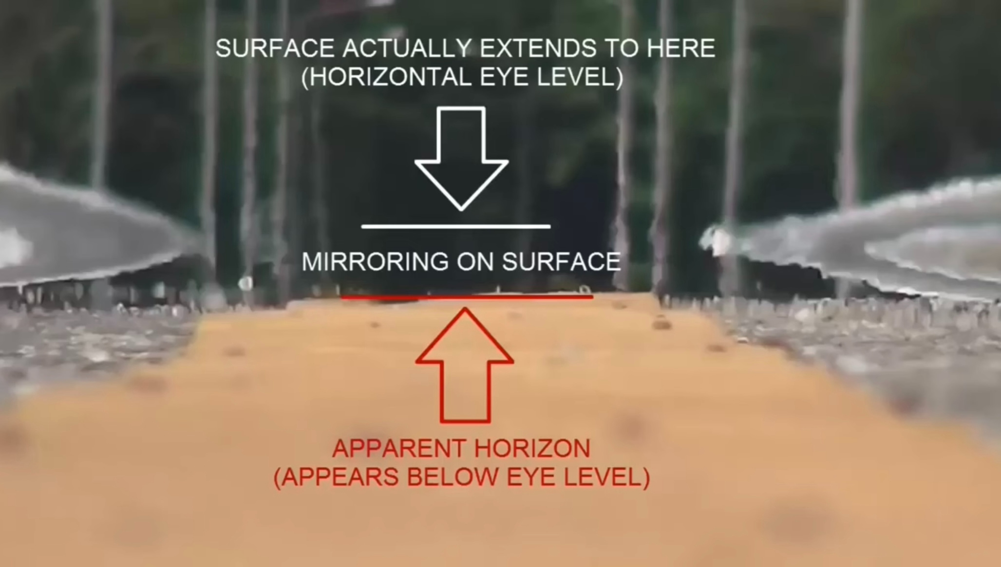 From my camera height of 36 inches, nothing but the top 120 feet of Ocean Casino should have been visible. 595 feet should have been hidden below the alleged horizon, yet we can see the entire height of Ocean Casino and the buildings in front of it. Note the mirroring effect upon the surface revealing a reflection of the buildings. This is a common phenomenon even at close distances. You may have noticed it on the road in front of you while driving. The following image is a good example of it.