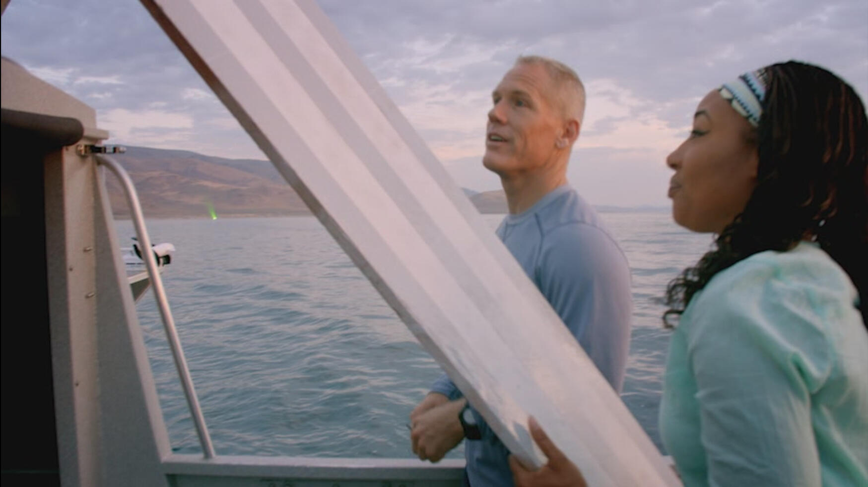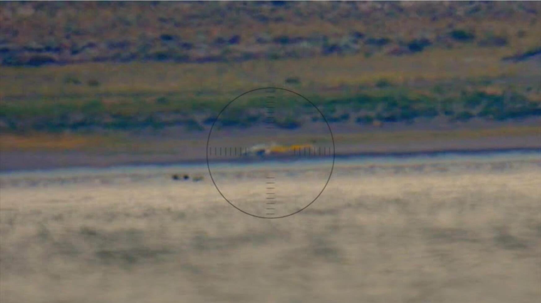 Although the 6 foot measurement was falsified by PBS and Hawking, it helps us by validating the trigonometry and geometry that we are using in our own experiments, because it is exactly the measurement we would expect if the Earth actually curved. The second and more obviously falsified experiment further validates it with their curvature drop measurement of 24 feet at 6 miles. This is also exactly what we would expect if there were indeed curvature.For their second experiment, the tools provided were a telescope and a helicopter. This is where the deception becomes plain for you to see.One person remained on the shore with a telescope pointing to the opposite shore 6 miles away. Meanwhile, two others were flown in a helicopter to the opposite shore.With this experiment, Hawking and PBS had the goal of convincing the public that objects disappear beneath a curved, distant horizon. The helicopter was the object that they had to make disappear. The problem? The Earth has no curved horizon to hide the helicopter.So what did they do to hide the helicopter? They performed editing tricks in post-production using two separate video layers. To make the helicopter disappear, they superimposed one video layer that contains the lake over top of a second background video layer that contains the helicopter. But don’t take my word for it. See it for yourself.The helicopter began its vertical descent to land on the opposite shore, and the presented view through the telescope showed the helicopter beginning to disappear behind the water at a height of 24 feet.Take note of the flock of birds that cross the water during the helicopter's descent.(Please try to view these and other images and videos on a computer monitor or television screen. A phone screen may be too small to see all of the detail, although rotating your phone to landscape may help.)