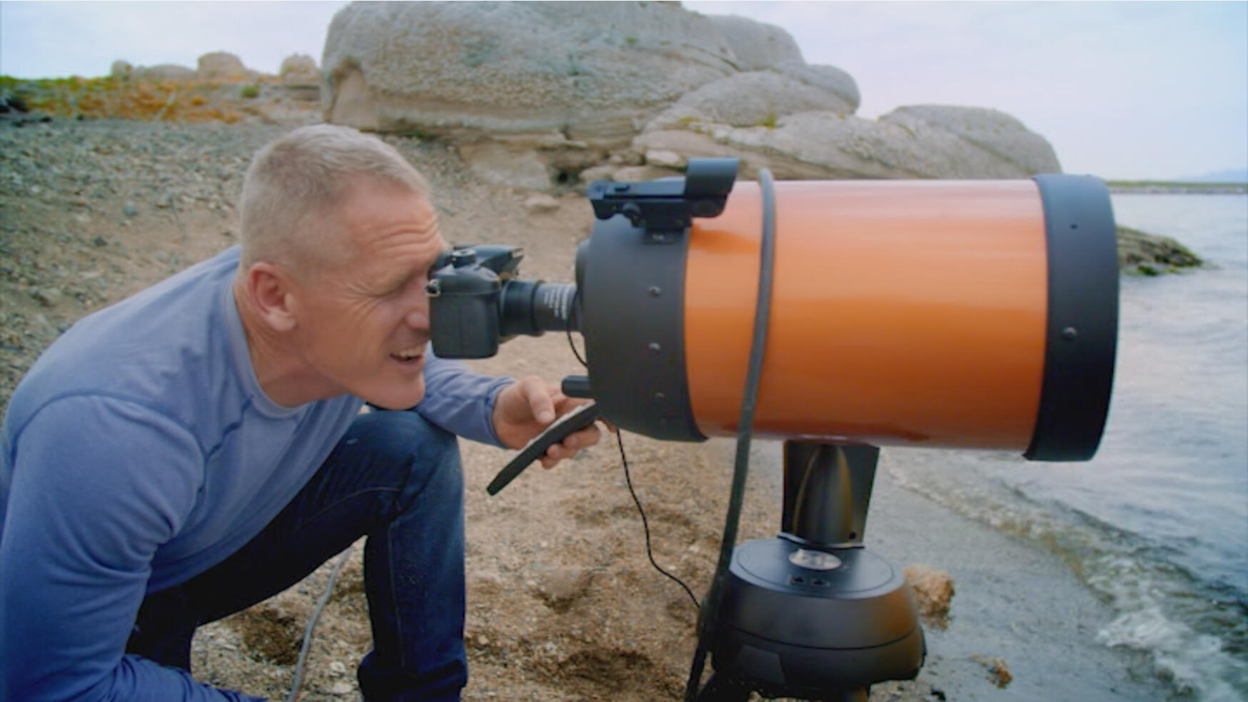 Although the 6 foot measurement was falsified by PBS and Hawking, it helps us by validating the trigonometry and geometry that we are using in our own experiments, because it is exactly the measurement we would expect if the Earth actually curved. The second and more obviously falsified experiment further validates it with their curvature drop measurement of 24 feet at 6 miles. This is also exactly what we would expect if there were indeed curvature.For their second experiment, the tools provided were a telescope and a helicopter. This is where the deception becomes plain for you to see.One person remained on the shore with a telescope pointing to the opposite shore 6 miles away. Meanwhile, two others were flown in a helicopter to the opposite shore.With this experiment, Hawking and PBS had the goal of convincing the public that objects disappear beneath a curved, distant horizon. The helicopter was the object that they had to make disappear. The problem? The Earth has no curved horizon to hide the helicopter.So what did they do to hide the helicopter? They performed editing tricks in post-production using two separate video layers. To make the helicopter disappear, they superimposed one video layer that contains the lake over top of a second background video layer that contains the helicopter. But don’t take my word for it. See it for yourself.The helicopter began its vertical descent to land on the opposite shore, and the presented view through the telescope showed the helicopter beginning to disappear behind the water at a height of 24 feet.Take note of the flock of birds that cross the water during the helicopter's descent.(Please try to view these and other images and videos on a computer monitor or television screen. A phone screen may be too small to see all of the detail, although rotating your phone to landscape may help.)